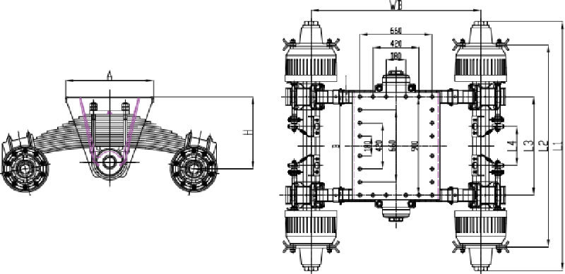 The Bogie Suspension for Semi Trailer can reduce unnecessary vibration and shock delivered to the body by the road surface, and improve driving stability. Since the location of the connected two tires is close to the ground, which can reduce costs and reduce the mass of the vehicle, each hub bearing can be adjusted independently to give it high rigidity and obtain better ride comfort. When driving on rough roads, the roll phenomenon can be more effectively suppressed.