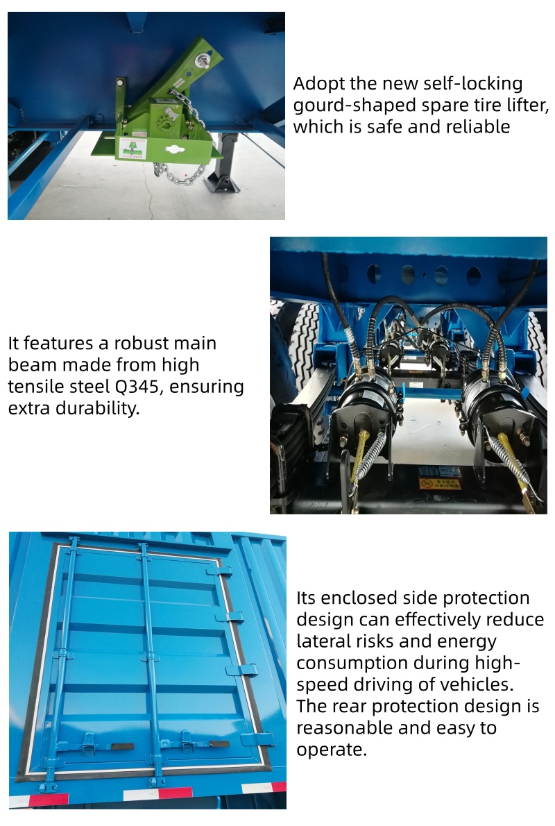 This semi trailer is designed for maximum efficiency, featuring a box cargo structure that optimizes space while providing excellent protection for goods. The three-axle configuration enhances load distribution, reduces wear and tear, and improves stability during transit, ensuring safe delivery every time. Additionally, streamlined components minimize maintenance needs, so your operations can run smoothly and cost-effectively.