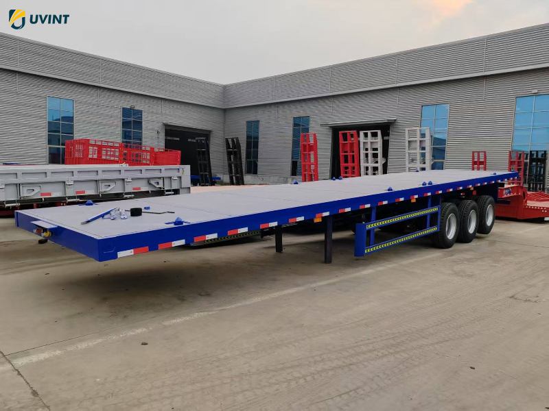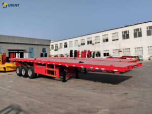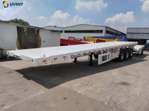 With its robust design and high-grade materials, this trailer is equipped to handle containers of varying sizes and weights with utmost stability and efficiency. Whether you’re navigating busy highways or rugged terrain, this flatbed trailer offers a seamless transportation experience to drive your operations forward.