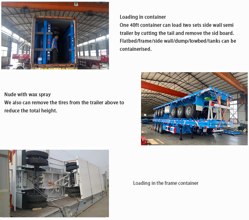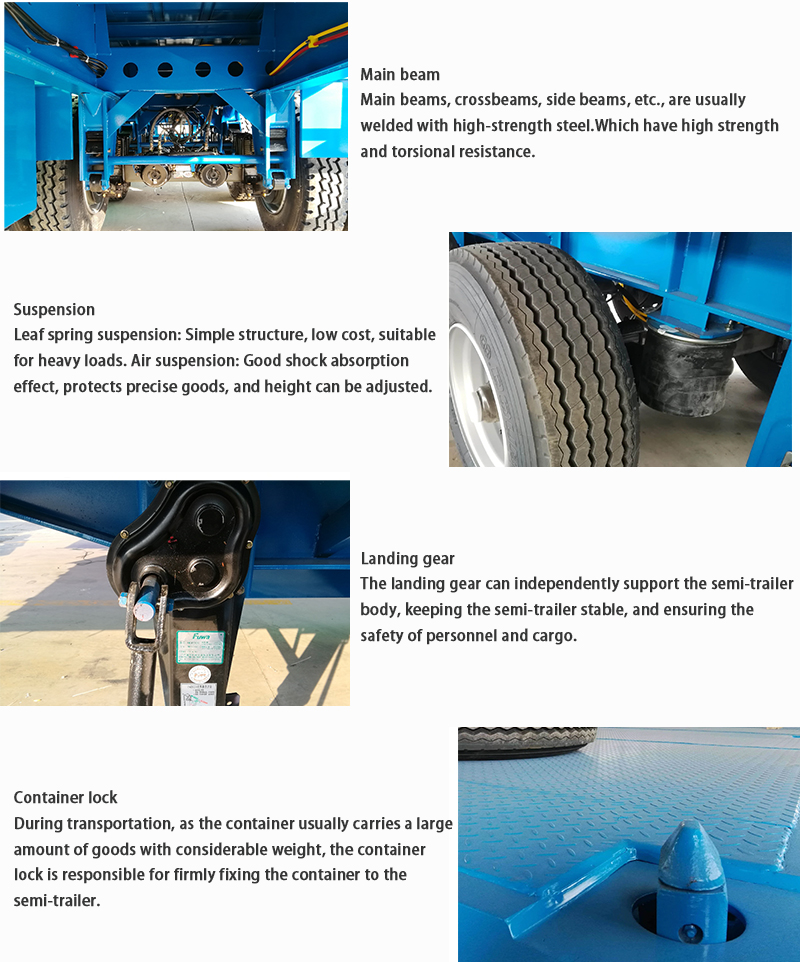 The 3 Axle Container Transport Flatbed Semi Trailer flatbed design offers flexibility, accommodating standard-sized containers securely and enabling rapid loading and unloading for streamlined operations. Anti-slip surfaces and reinforced edges further enhance safety during transit.