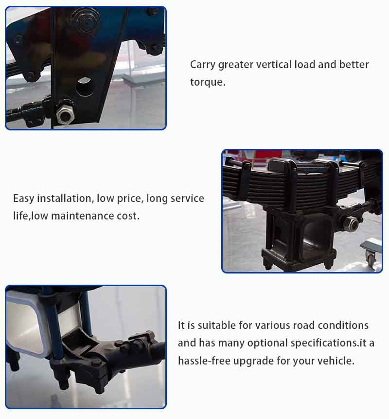Manufactured with robust components and cutting-edge technology, the German Type Mechanical Suspension ensures longevity and consistent performance. Its unique design minimizes wear and tear on trailers, offering years of dependable service. Crafted for compatibility with a wide range of heavy vehicles, its universal appeal caters to fleets of various sizes. Say goodbye to frequent breakdowns and hello to long-lasting reliability.